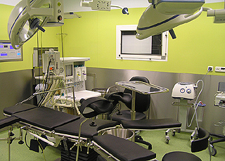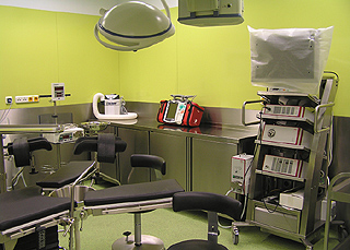 Ve třetím podlaží je komplexně vybavený operační sál se zázemím. Ten slouží různým typům operací.