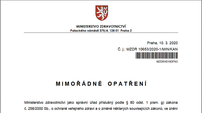 Bezprecedentní preventivní opatření Ministerstva zdravotnictví MZd ČR: